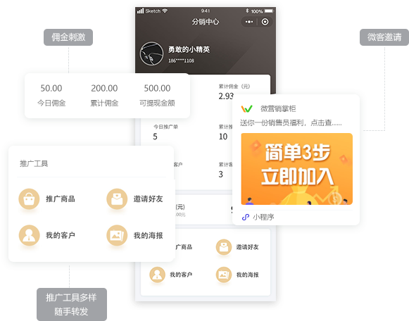 佣金奖励、邀请奖励、功能灵活,
